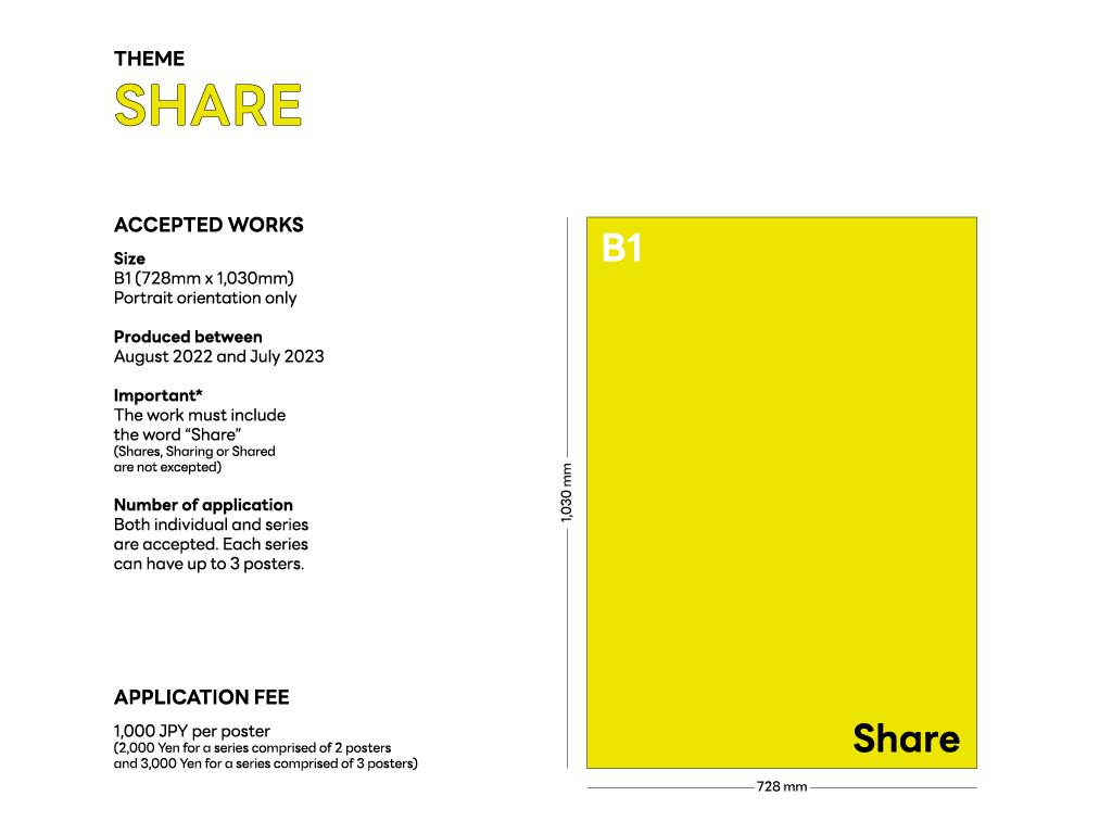เอกลักษณ์อย่างหนึ่งของรายการประกวดนี้คือ “ขนาด B1 (728 มม. x 1,030 มม.)” และจะต้องเป็นแนวตั้งเท่านั้น ซึ่งเป็นขนาดมาตรฐานของโปสเตอร์ที่ใช้กันในประเทศญี่ปุ่น โดยการตัดสิน จะแบ่งออกเป็น 3 รอบได้แก่